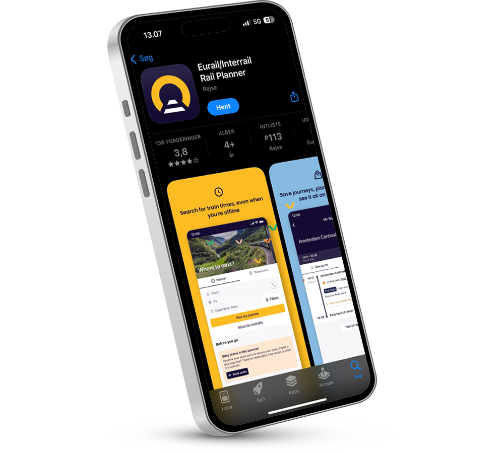 Med Eurail/Interrail Rail Planner app på telefonen har du en digital rejsemakker med i lommen. Her kan du: