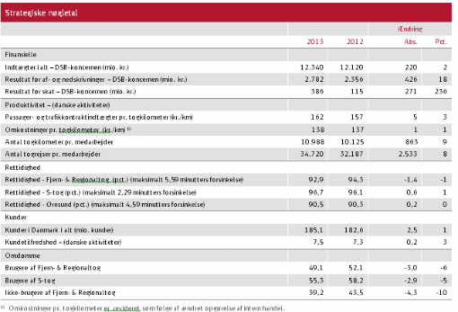 I 2013 leverede DSB et resultat før af- og nedskrivninger på 2.782 mio. kr. mod 2.356 mio. kr. i 2012, og resultatet før skat blev 386 mio. kr. mod 115 mio. kr. året før på trods af: