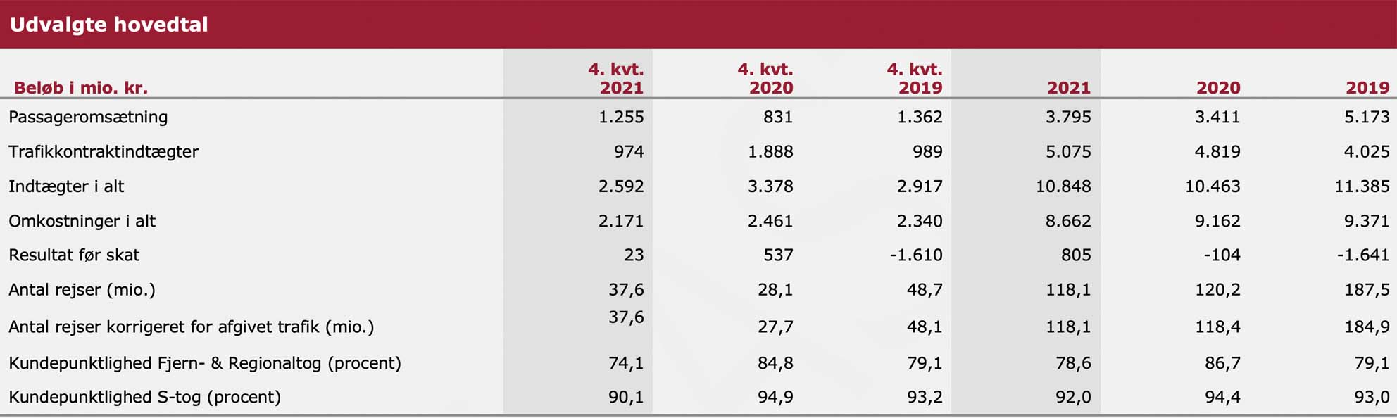 • Kundepunktligheden har været udfordret i 2021 og er påvirket af blandt andet Banedanmarks infrastrukturar-bejder